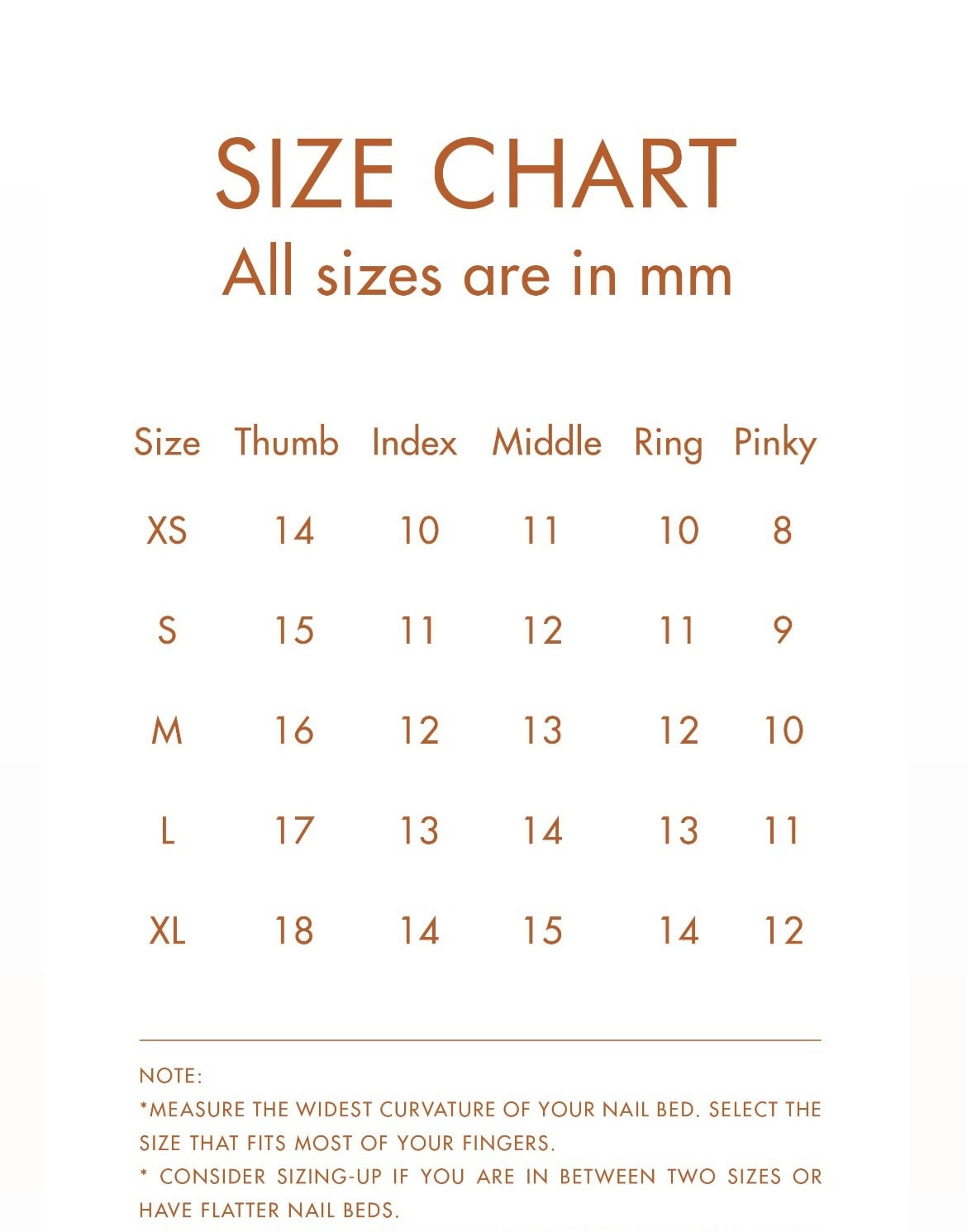 The kit includesĀ set of 10 customized gel based presson nails, liquid glue, gel tabs, buffer, cuticle pusher, alcohol wipe and the instruction card š§”