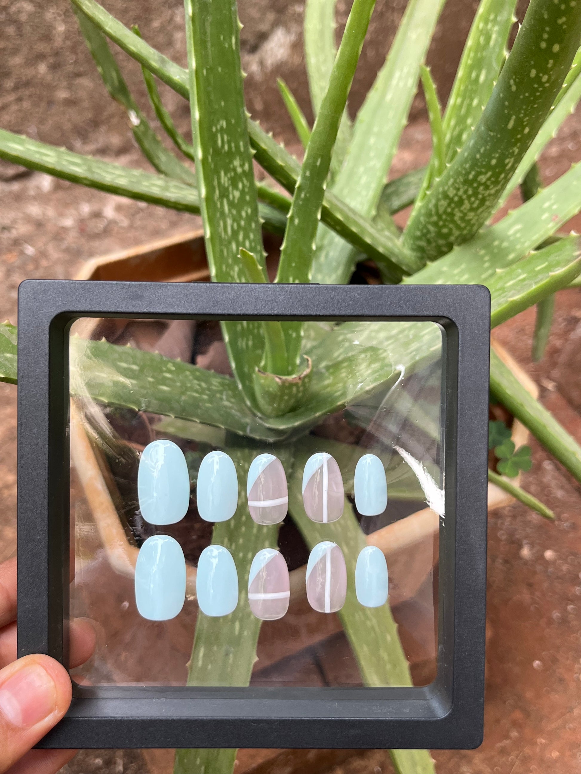The kit includes set of 10 customized gel based presson nails, liquid glue, gel tabs, buffer, cuticle pusher, alcohol wipe and the instruction card 🧡