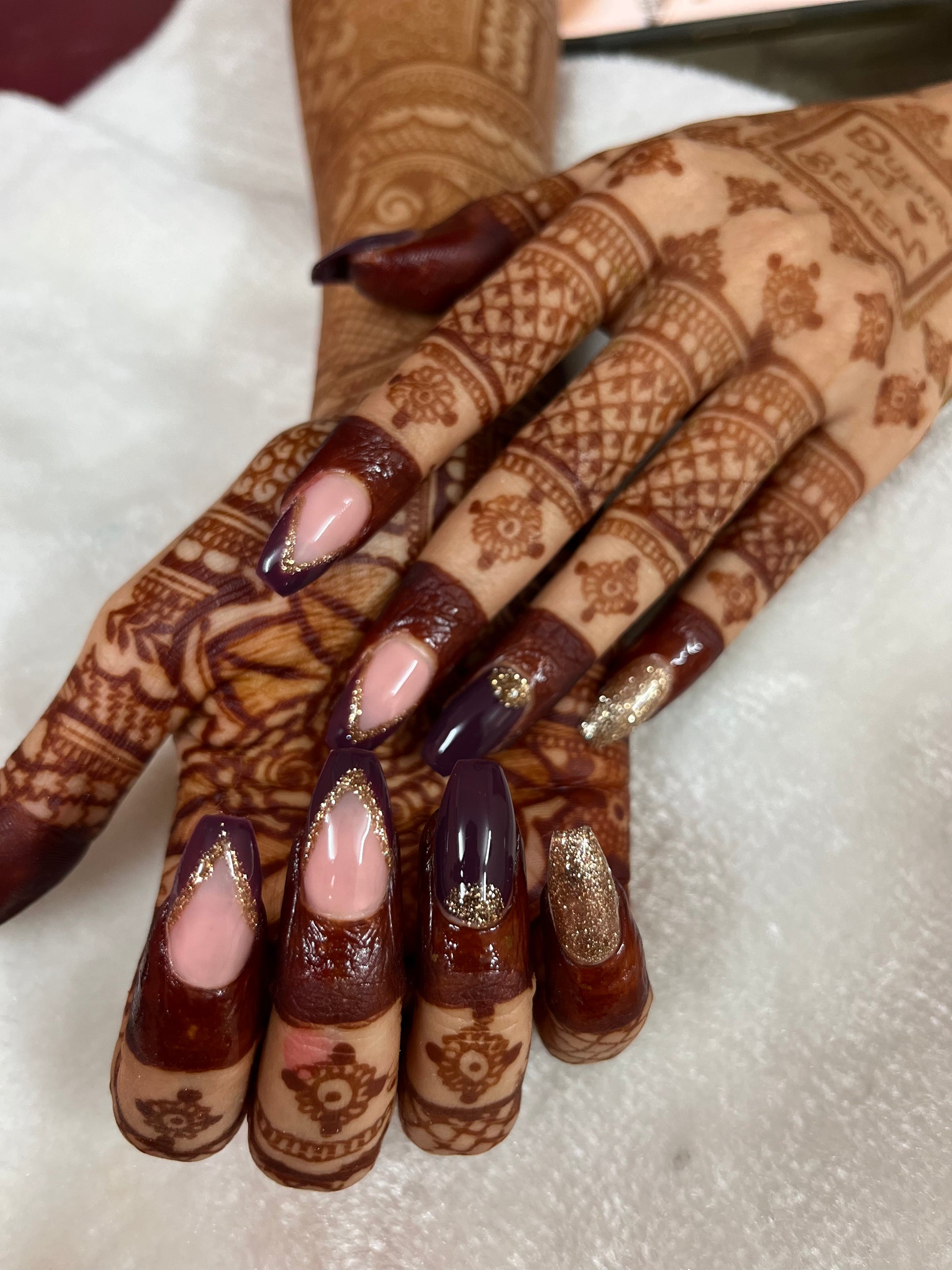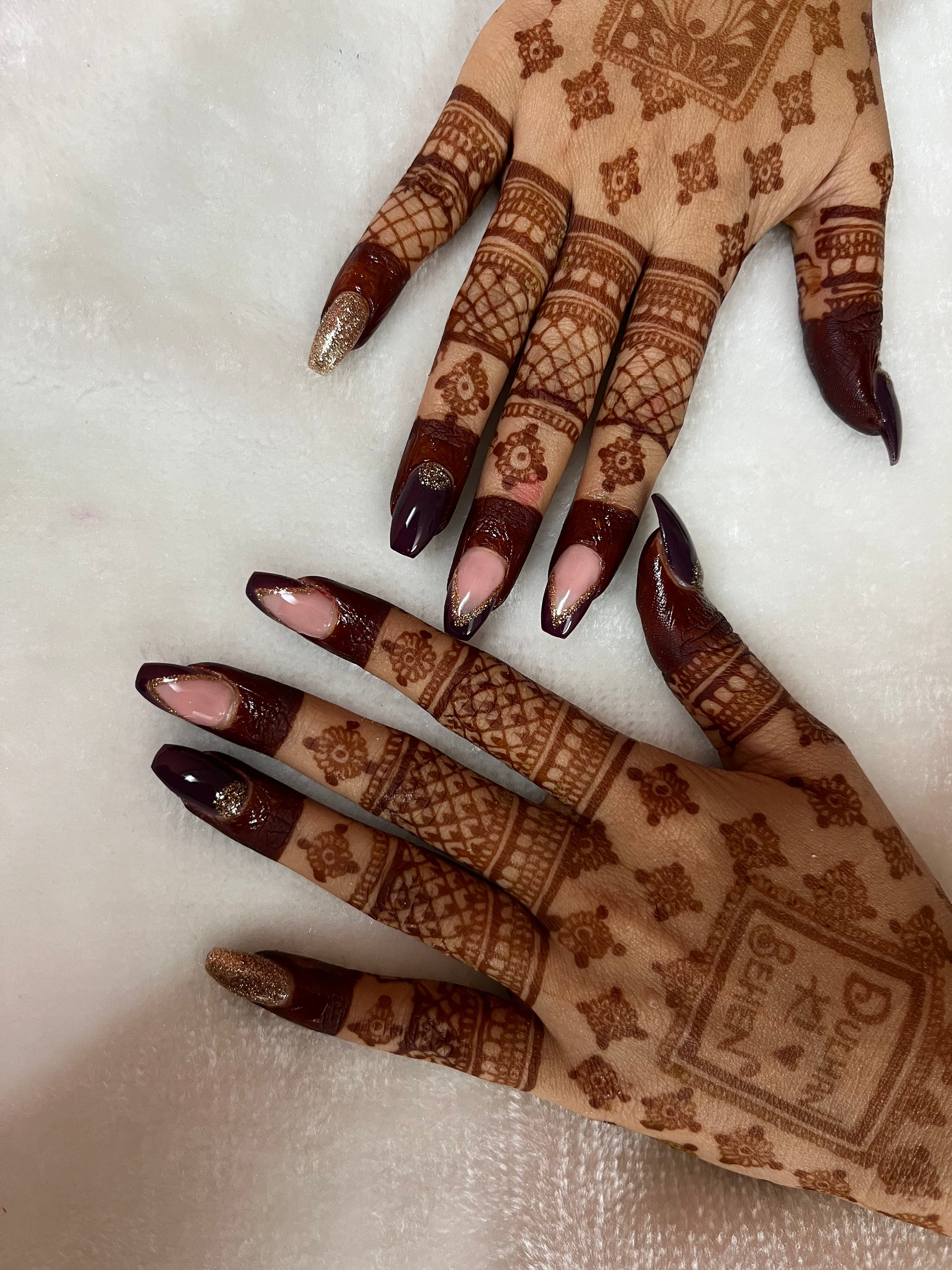 The kit includes set of 10 customized gel based presson nails, liquid glue, gel tabs, buffer, cuticle pusher, alcohol wipe and the instruction card 🧡